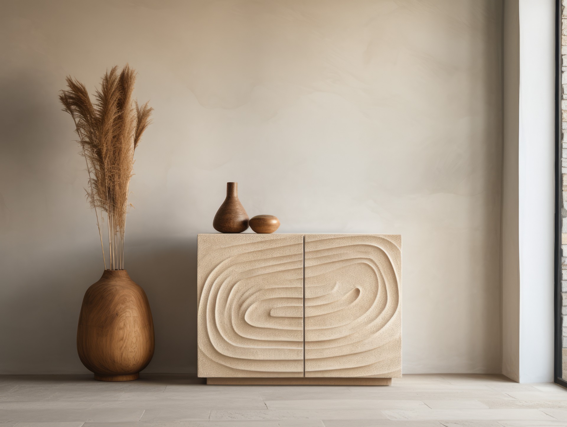 El minimalismo suele combinarse con materiales que aportan calidez al espacio. La madera, la cerámica y las fibras naturales son muy utilizadas en este estilo.